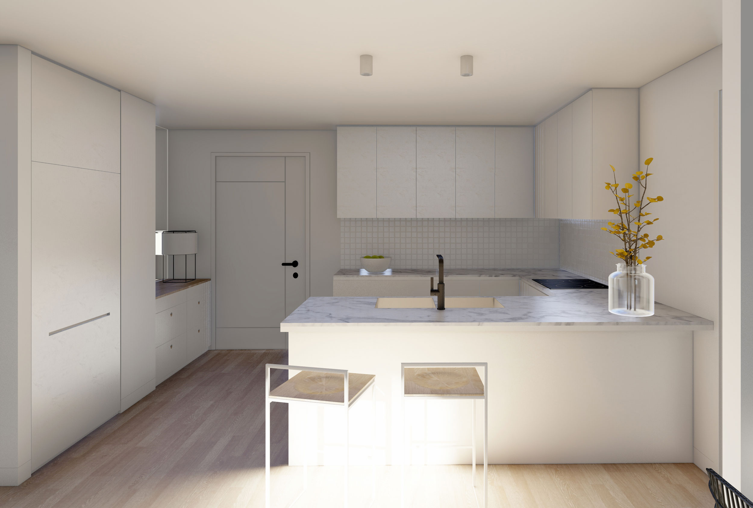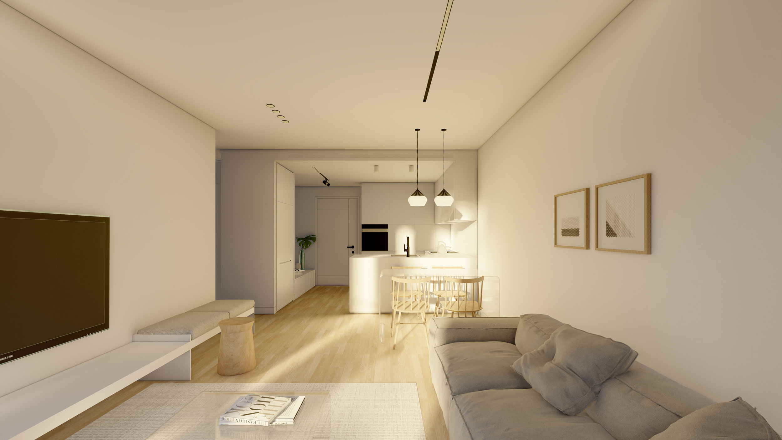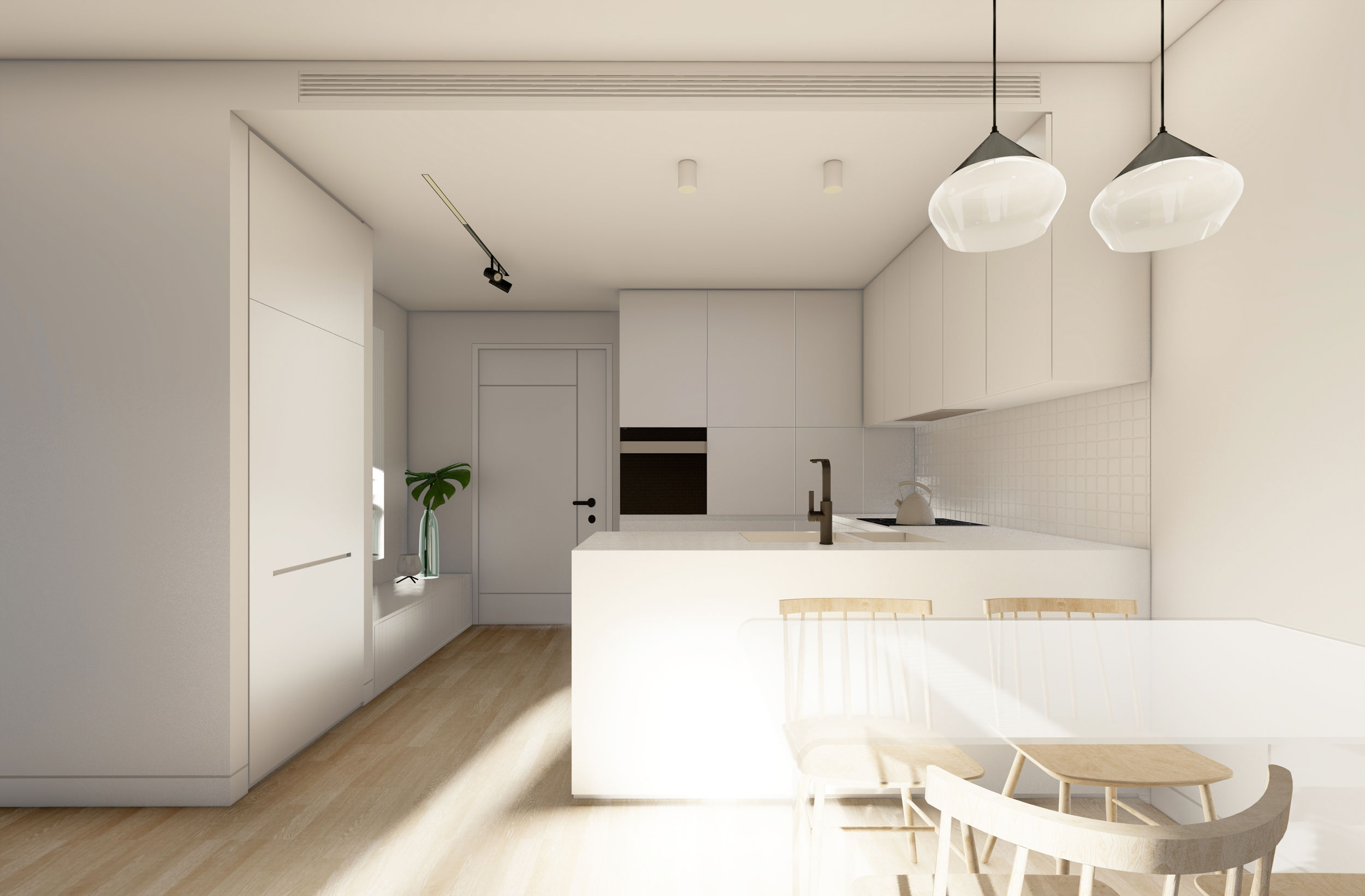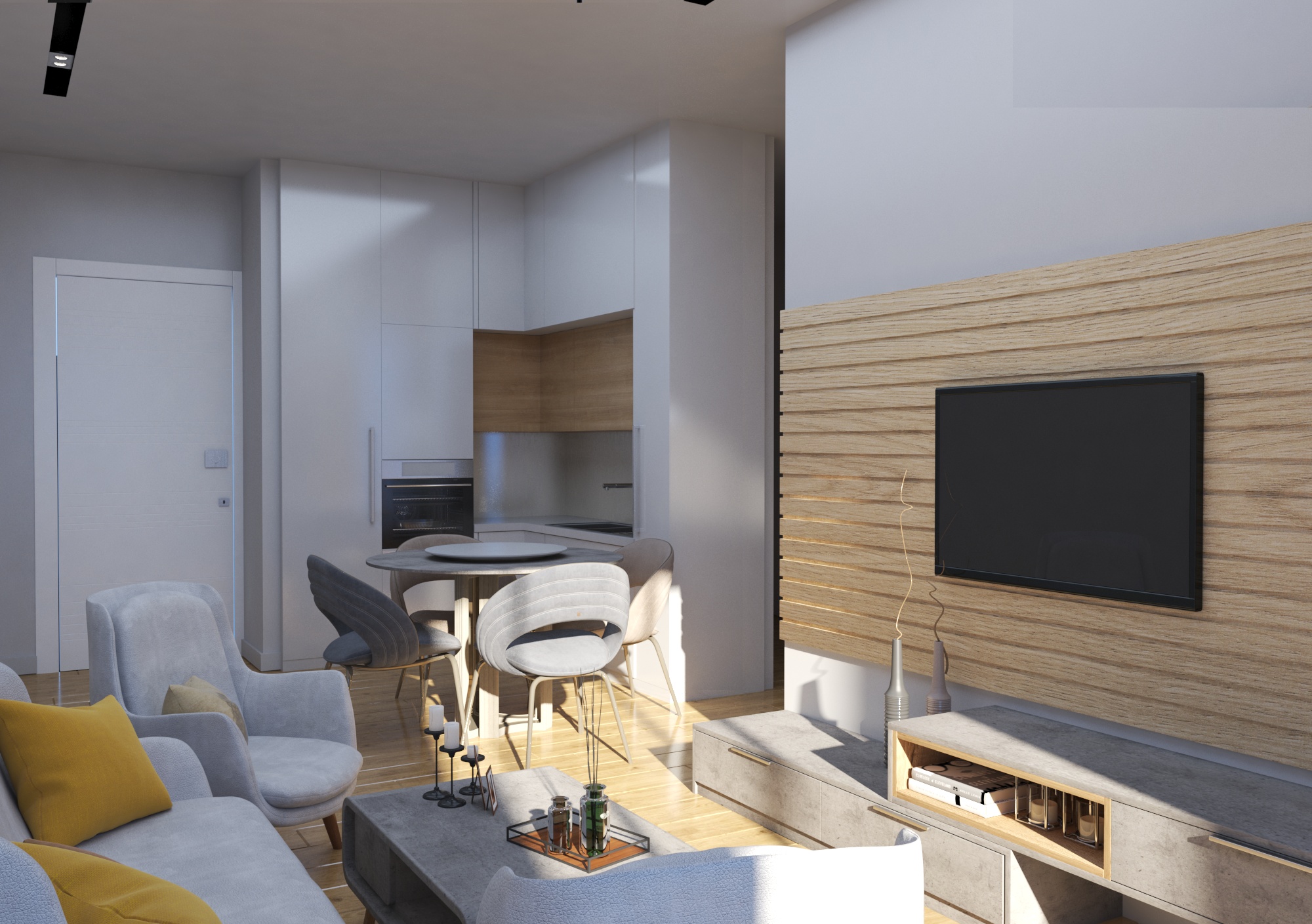 آشپزخانه باز، غذاخوری و نشیمن دلباز.