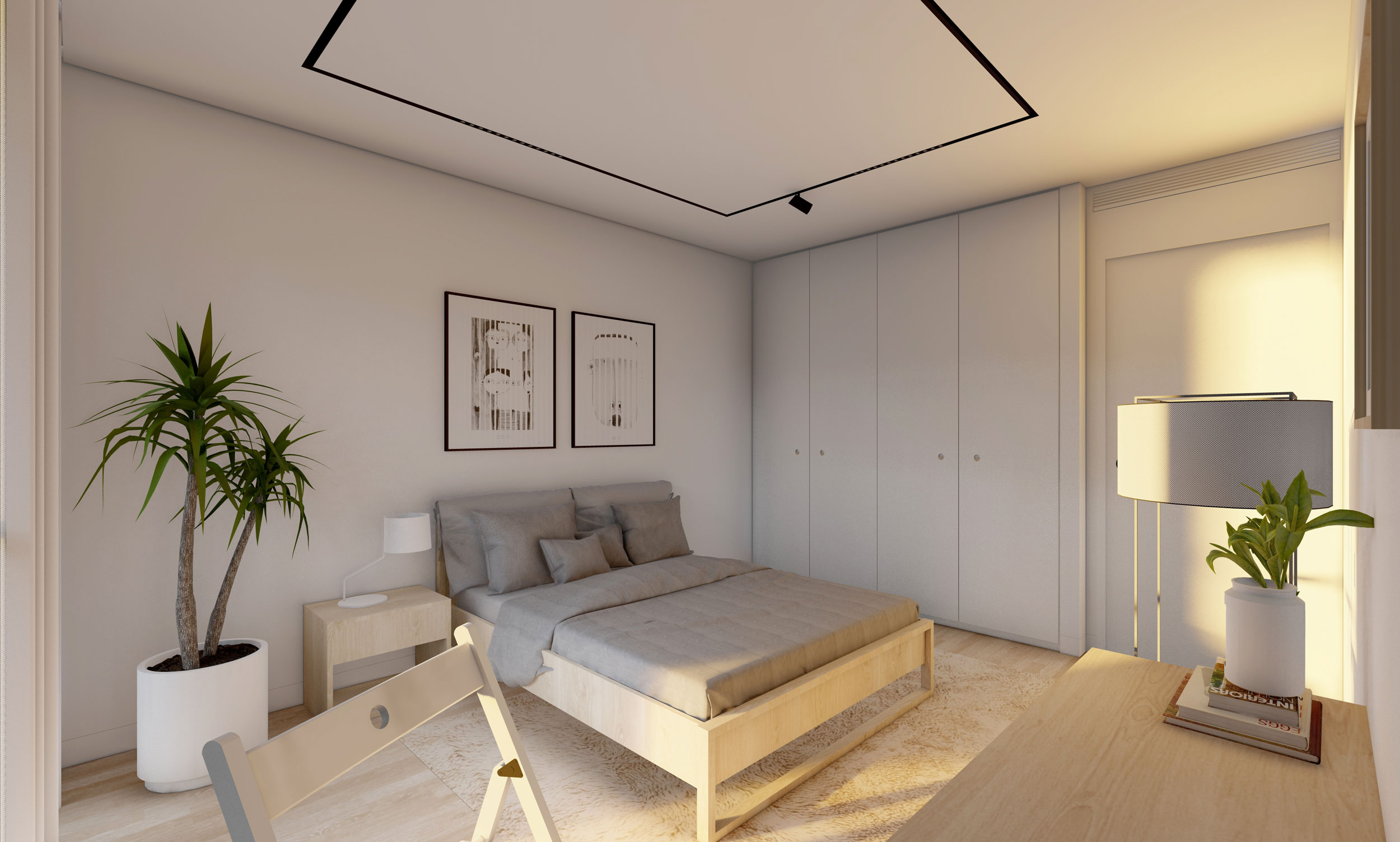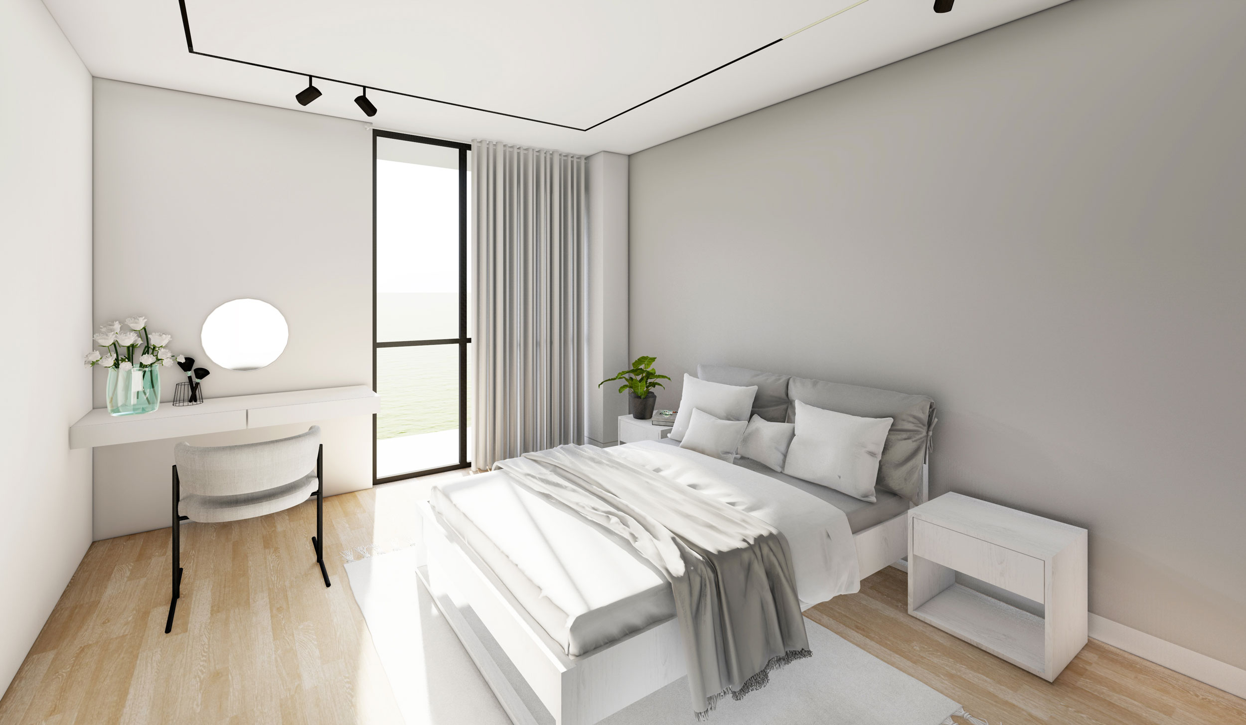 یک اتاق خواب بزرگ برای تخت خواب دو نفره با یک حمام و دستشویی، لاندری مستقل، آشپزخانه باز، غذاخوری و نشیمن دلباز
