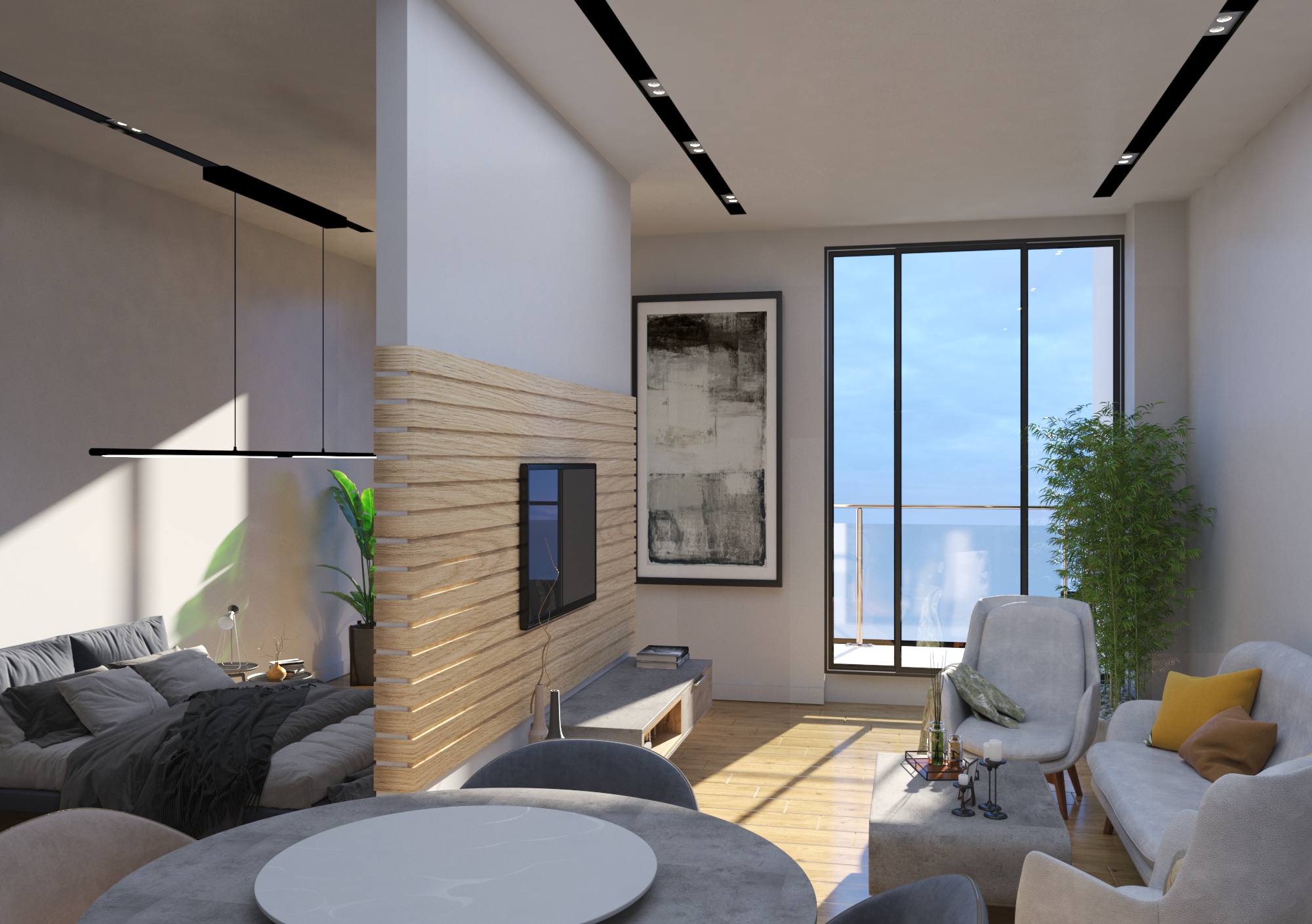 فضای خواب و نشیمن نیمه جدا و دلباز
